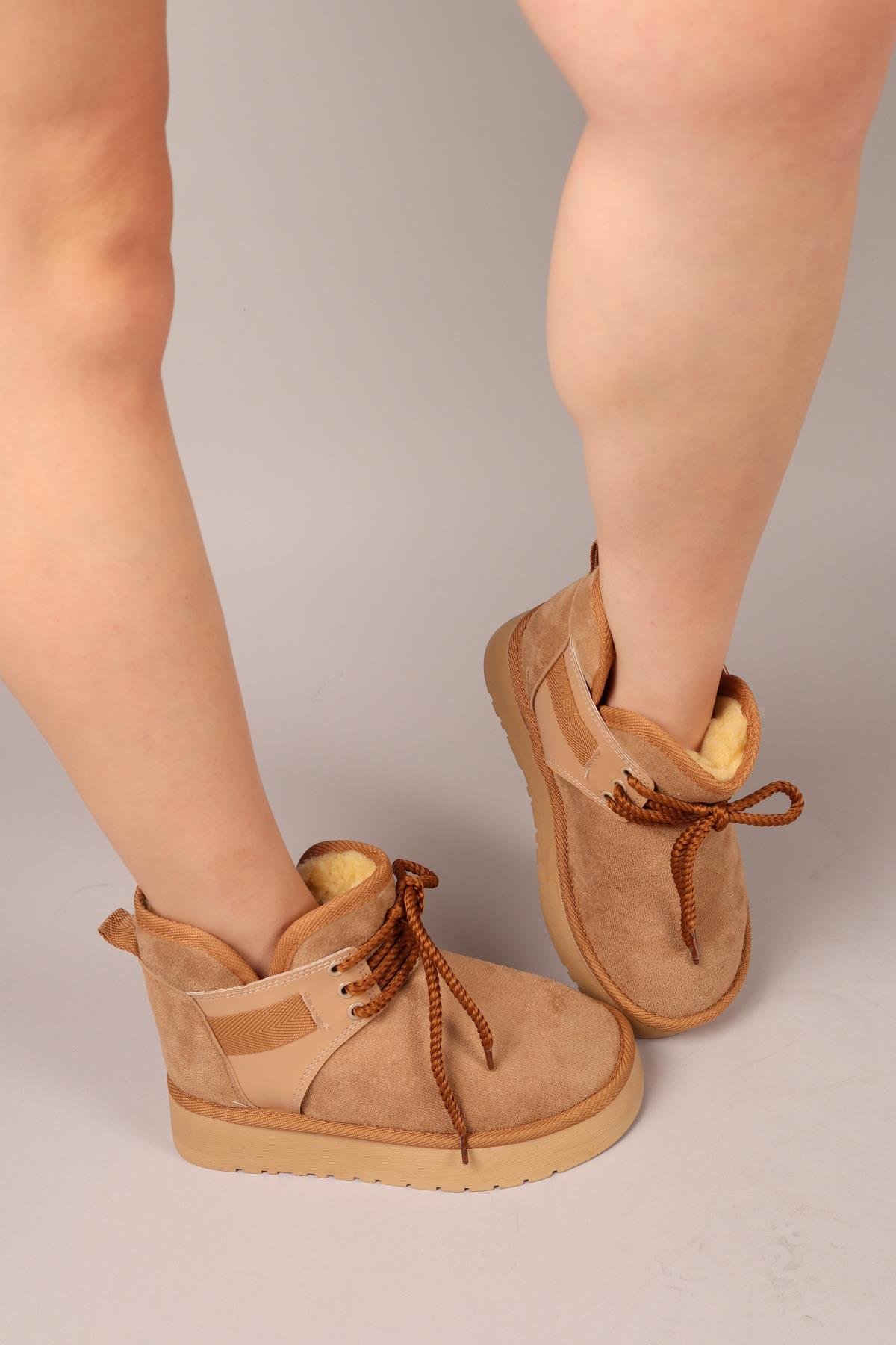PUFF İçi Suni Kürklü Süet Bot CAMEL (5686)